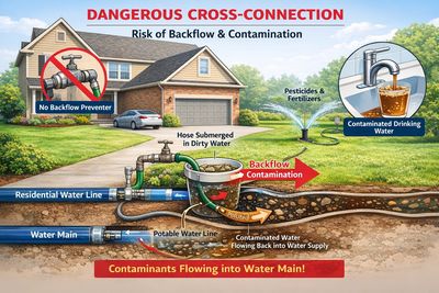 A commercial backflow incident occurs when a cross-connection, a contaminant, and a pressure change combine to pull hazardous material into a public water supply.